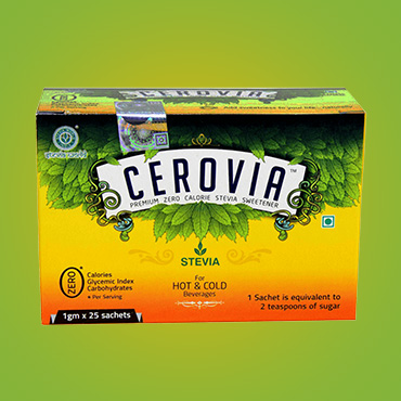 A natural sweetener containing extracts from Stevia leaves, Cerovia is nature’s gift of sweetness for people seeking improved health and lifestyle. Cerovia is 100% vegetarian with no side effects unlike artificial sweeteners. It is safe for all age groups, including pregnant woman and children and suited for people with diabetes and obesity.